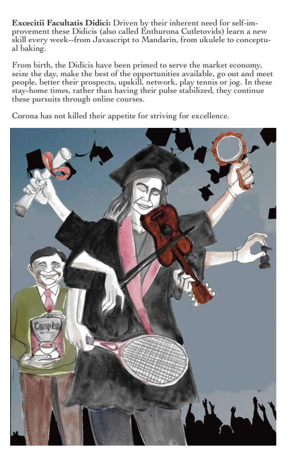 With the coronavirus introducing new words into our collective lexicon, Sarnath Banerjee profiles a range of distinct new character types that have emerged in this period of crisis.Sarnath Banerjee, Mint Lounge, April 18, 2020 -