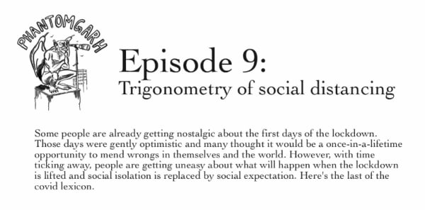 In Episode 9 of his fortnightly column, Sarnath Banerjee explores the trigonometry of social distancing, the geometry of isolation, and the algebra of infinite self-discovery.Sarnath Banerjee, Mint Lounge, May 16, 2020 -