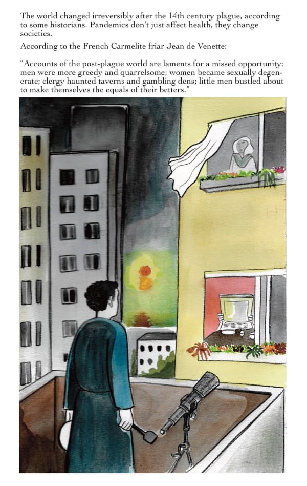 In episode 13 of his fortnightly graphic column, Sarnath Banerjee looks back on the history of plague outbreaks and their moral impact on society.Sarnath Banerjee, Mint Lounge, July 11, 2020 -