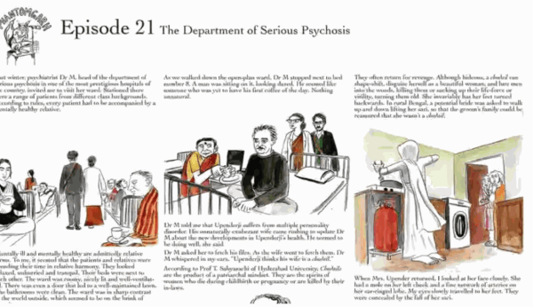 Sarnath Banerjee spends an afternoon at the department of serious psychosis, where patients from different backgrounds coexist, as do strange notions of reality and illusionSarnath Banerjee, Mint Lounge, November 27, 2020 -
