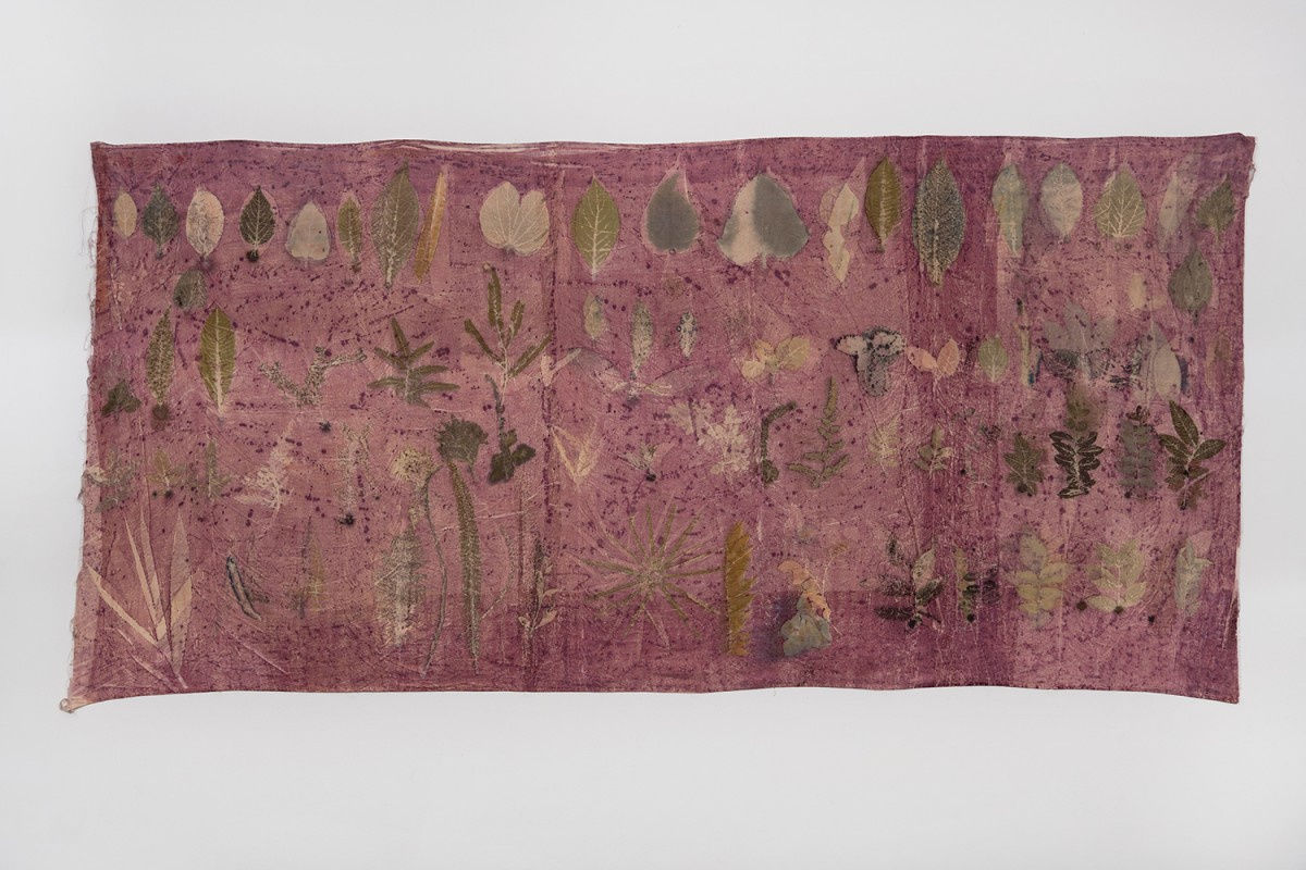 Hemali Bhuta, A gift, series from the garden of CONA, Goa. Collaboration with Gorika Singla, Botanical print on silk, lac, 120 x 240 cm, 2022