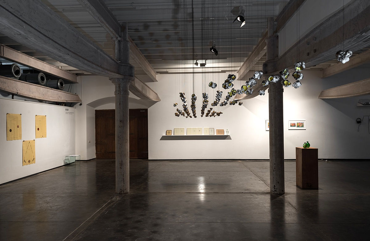 Continuing on the train of thought of pushing the physical limits of the globe, Bombay based artist Shreyas Karle provides his hypotheses on gravity, trying to make sense of and break conceptually past the forces that hold the water of the world together on a “round ball of land”. This Anti-Gravity series is a beautiful precursor to works encountered at the end of the exhibition by William Forsythe and Kirsten Mosher. Seemingly defying gravity, suspended in the middle of the gallery, are 185 Japanese paper clay sculptures representing popcorn in Los Angeles based artist Pae White’s work Popstellation. These works, like many in the exhibition, are suspended and defy ideas of gravity, and the process of becoming popcorn is one of shifting states through fire. Special effects and the entertainment industry link both Bombay and Los Angeles, and moving further ahead, you encounter a video of a Sand Fountain by Berlin based artist Klaus Weber, who was also inspired by a period of time based in Los Angeles where he say the strong role of special effects on shaping the city’s views of reality. Where one would expect water coming out of a fountain, here slow moving grains of sand pour out. Could this be the land from the other side of the Earth? More on that later.