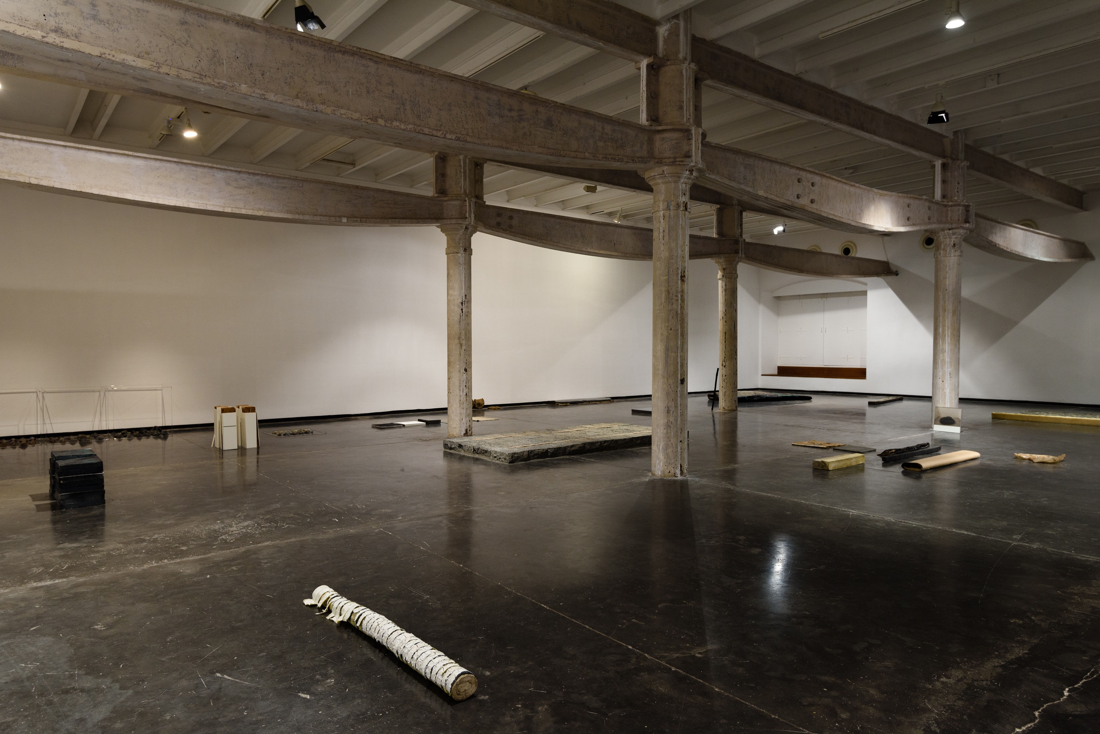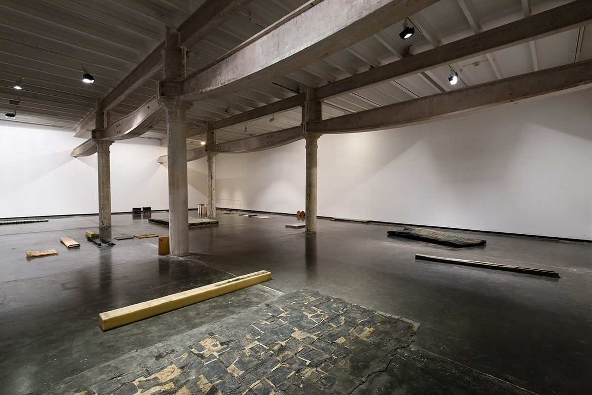 Many of the works in Measure of a foot, Hemali Bhuta’s current exhibition at Project 88, were made by means of unmaking what were once finished works in Point-Shift and Quoted Objects, her previous solo at the gallery. Materials carry their own geologies, and in this body of work the artist goes back in time to bring something forth from that which remains. These processes of transmutation are invisible to us as viewers, but nonetheless suggest that the works of art, and the matter they contain, belong to a continuum. Lying on the ground, they are future memorials to their former selves.